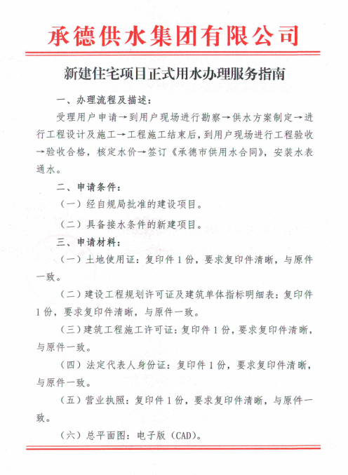 新建住宅項目正式用水辦理服務指南