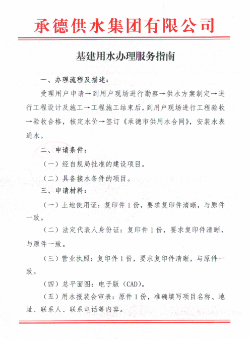 信息來源:承德供水